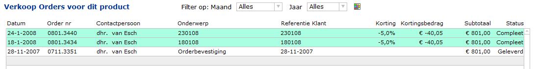 In dit voorbeeld zou het tweede record de status 'In bestelling' moeten hebben. Mits de voorraad 2 stuks zou bevatten dan mogen beide orders op compleet komen te staan.