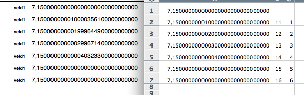 Vanuit een Excel bestand wil ik getallen importeren in een FMP tabel. Het veld waar ik de getallen in importeer is een getal veld vanuit een 'standaard' veld in het Excel bestand. Echter gaat dit niet helemaal zoals het moet.