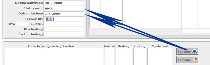 Ik heb het zo ver voor elkaar als ik op de knop "factuur" klik wordt de datum ingevuld en status op 99% gezet. logische stap zou zijn om factuurnummer aan te maken en door te nummeren.