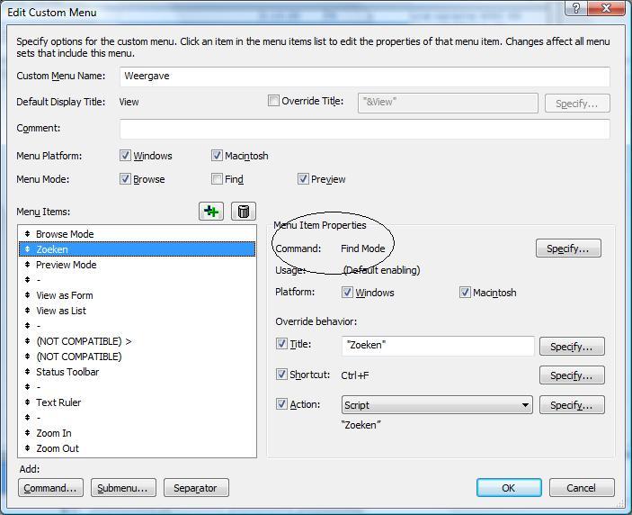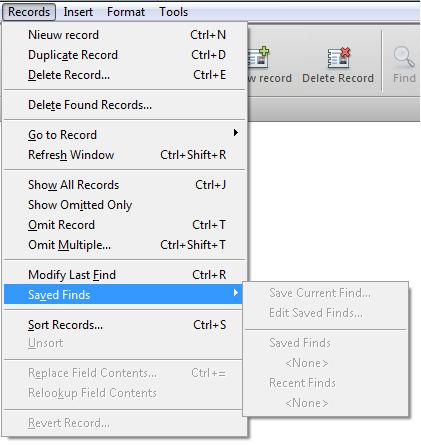 Is het iemand al gelukt om de "saved finds" menu functie aan de praat te krijgen in een custom menu. In het standaard menu van Filemaker werkt het naar behoren maar zodra je deze toevoegd aan een custom menu zijn alle opties 'disabled' in het menu voor Saved finds.