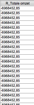Nu als ik een Resumé veld van de omzet, zodanig dat ik de totale omzet heb, maakt hij deze ze negatief ( zie foto hieronder ). Wat ik eigenlijk wil bereiken dat hij automatisch de creditnota van de facturen aftrekt. zodanig dat ik een juist beeld heb van de totale gemaakte omzet.
